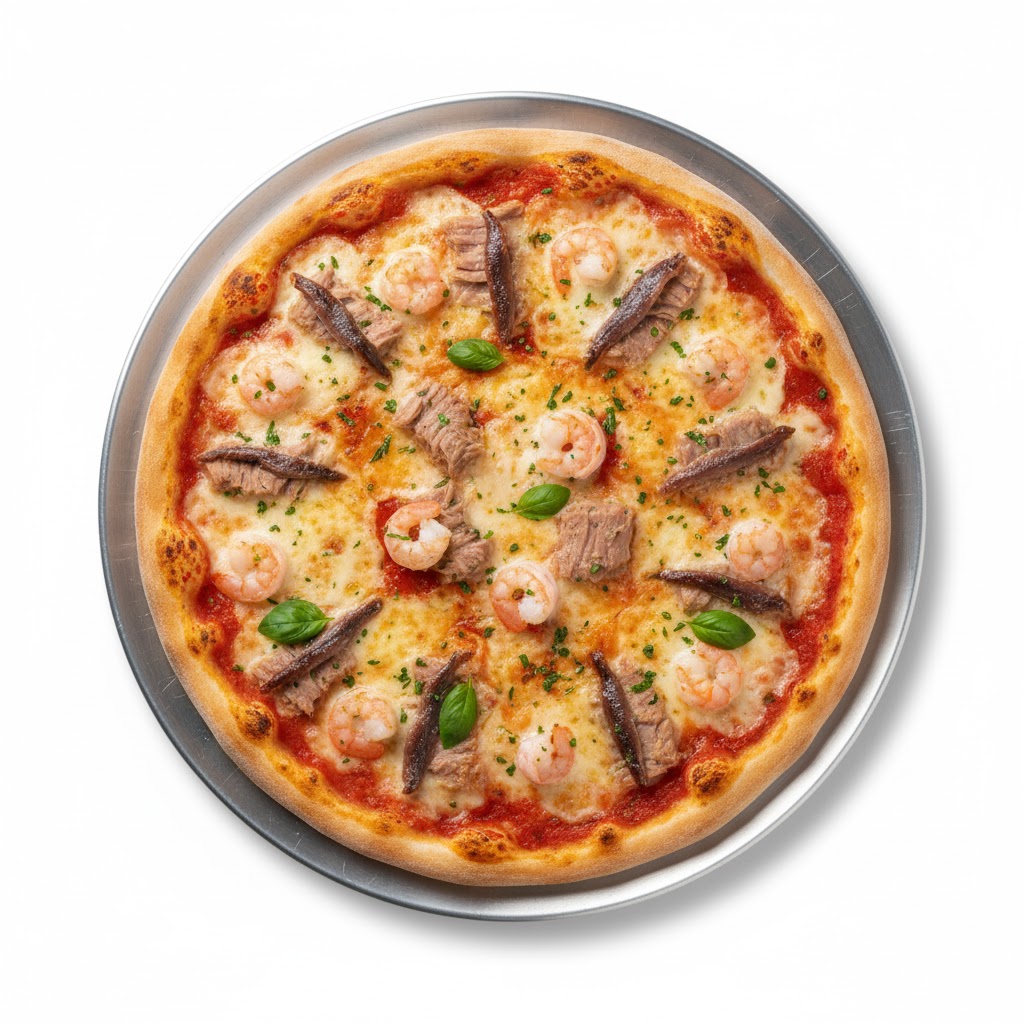 A flavorful ocean mix of tuna, prawns, and anchovies.